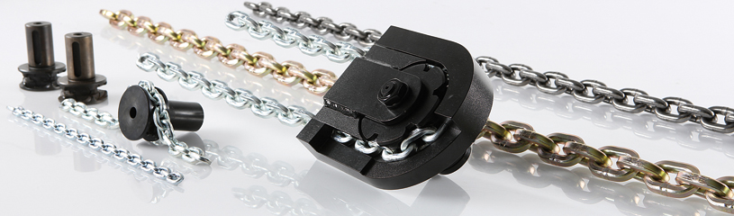 - 7% smaller chain diameter compared to round steel chains with same cross section areas. This is enabling a smaller chain drive and finally a smaller hoist
